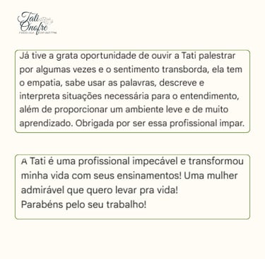 Mais do que transmitir conhecimento, minhas palestras são desenhadas para provocar reflexão, gerar engajamento e promover mudanças reais de comportamento, sempre com base em evidências científicas, linguagem acessível e empatia com o público.